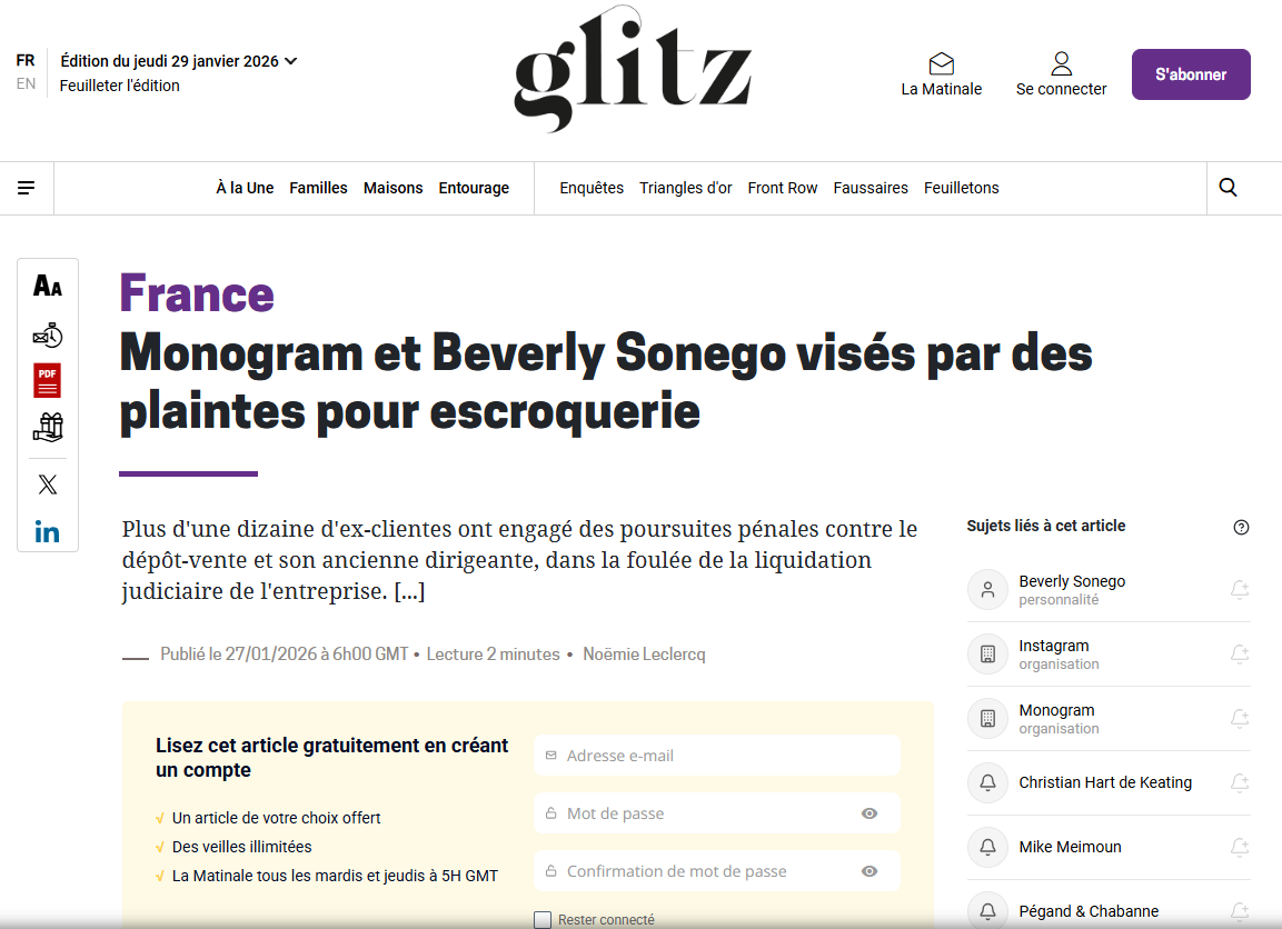 Monogram et Beverly Sonego visés par des plaintes pour escroquerie
